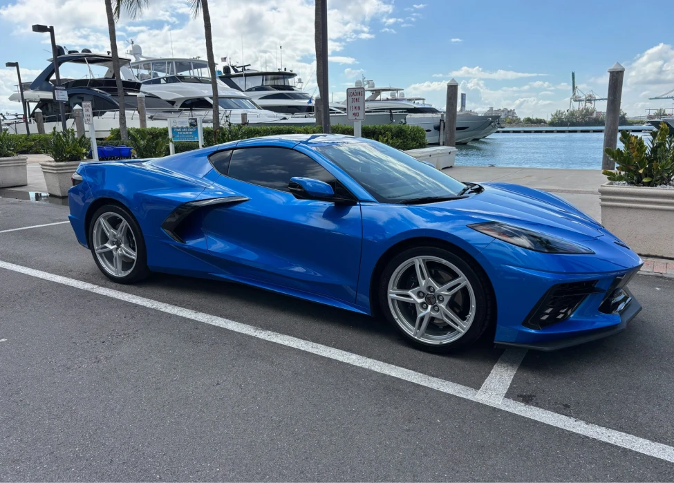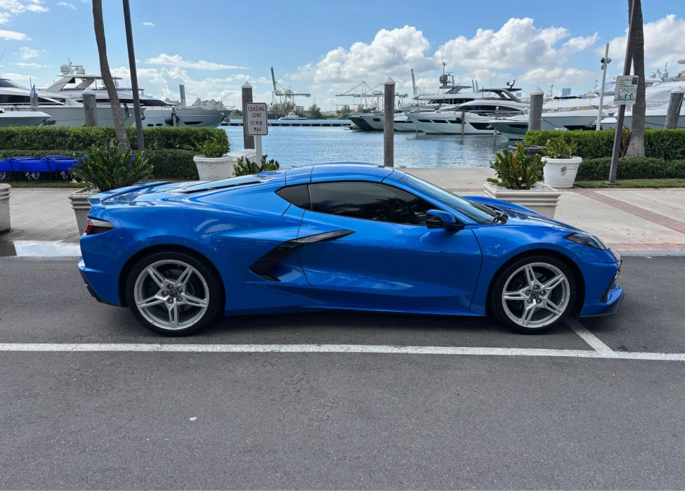 Renting the Blue Corvette C8 in Miami gives you modern supercar performance with a sleek, head-turning design. The low stance, sharp lines, and bold blue paint pop against the bayside skyline, grabbing attention on Ocean Drive, Brickell, and every valet drop-off in between. Behind the wheel, precise steering and instant throttle response make quick causeway runs and city traffic feel effortless. The mid-engine layout delivers confident grip and balance, while strong brakes keep everything under control. Inside, you get supportive sport seats, premium materials, and easy-to-use tech for music, navigation, and calls. Choose the Blue C8 when you want a true Miami experience: exotic-level looks, everyday comfort, and the sound of an American V8 echoing off the waterfront.