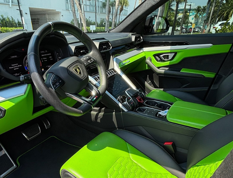 In black, the Urus takes on a stealth, premium look. The dark finish emphasizes its muscular stance and photogenic details. Performance remains immediate, with drive modes that adapt from relaxed cruising to spirited driving. The cabin blends supportive seating with intuitive controls and ample space for companions. It suits day-to-night schedules without compromise. Choose the black Urus for powerful presence and all-around practicality. It’s a confident match for upscale venues across the city.