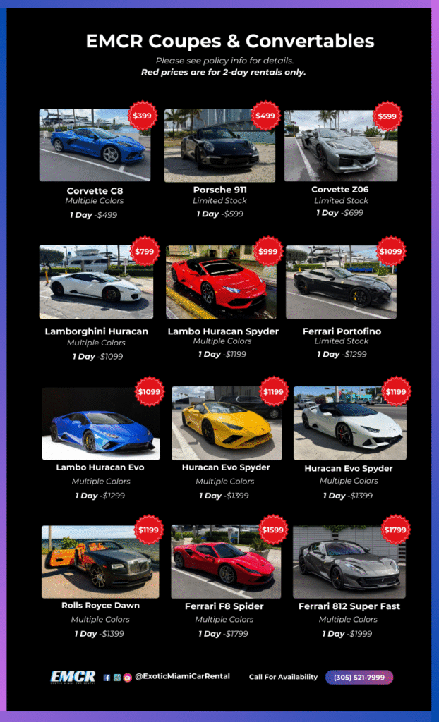 Miami’s most-reviewed exotic rentals. Hundreds of 5-star experiences from real guests.